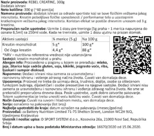 Nutritivna vrednost za BATTERY REBEL CREATINE, 300g, Unflavoured