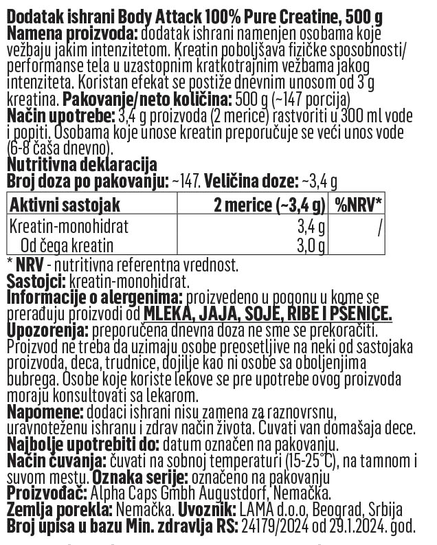 Pošto prirodni izvori kreatina često sadrže mnogo masti, teško je dobiti adekvatnu zalihu. Unosom suplemenata kreatina, bez opterećenja digestivnog trakta, brzo i adekvatno popunjavamo rezerve kreatina u našem organizmu.