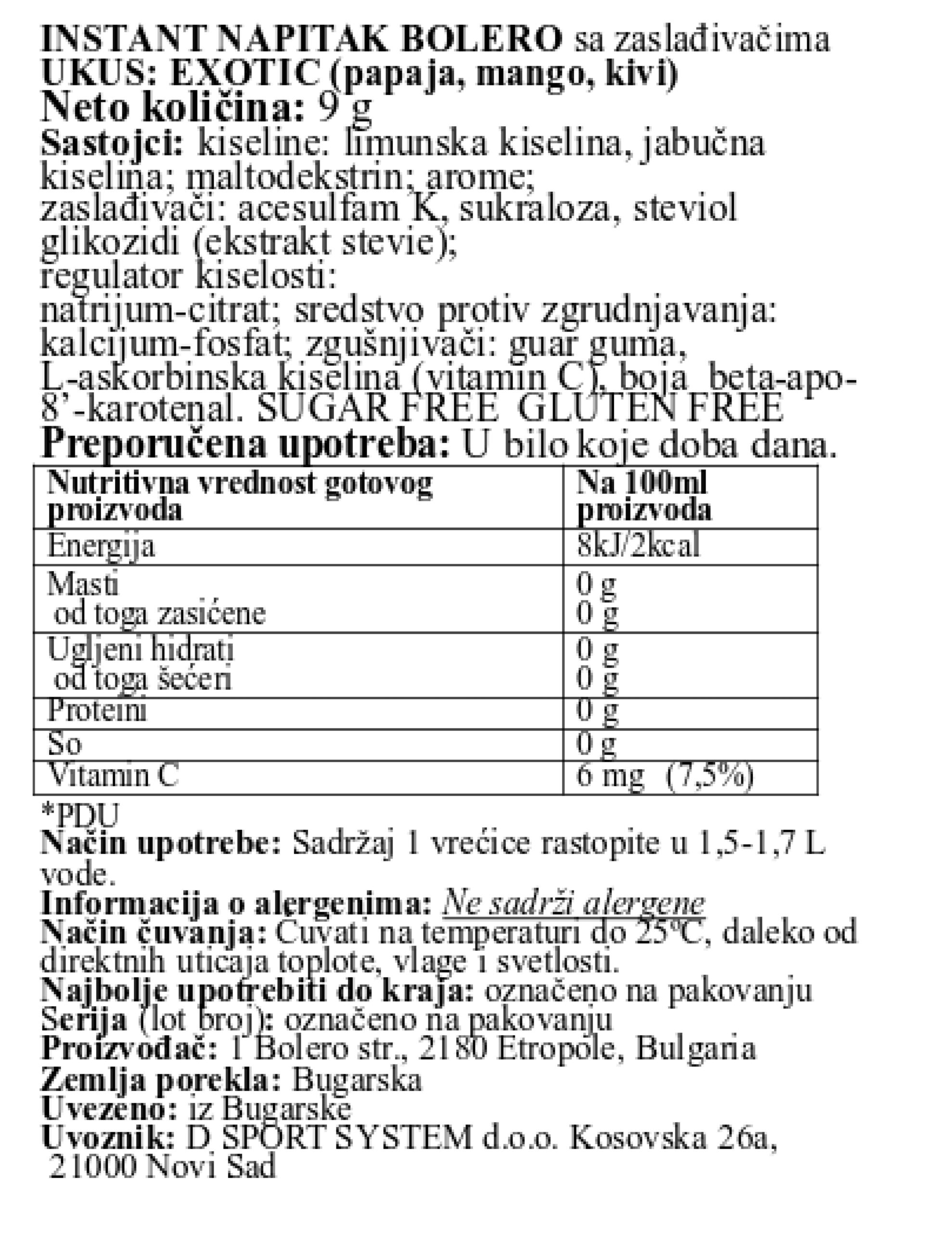 Bolero instant napici su ukusan i zdraviji izbor, BEZ šećera, konzervansa i glutena, sadrže steviju i prirodne arome! Imaju tek par kalorija i NE sadrže veštačke boje. 100% dnevna doza VITAMINA C!