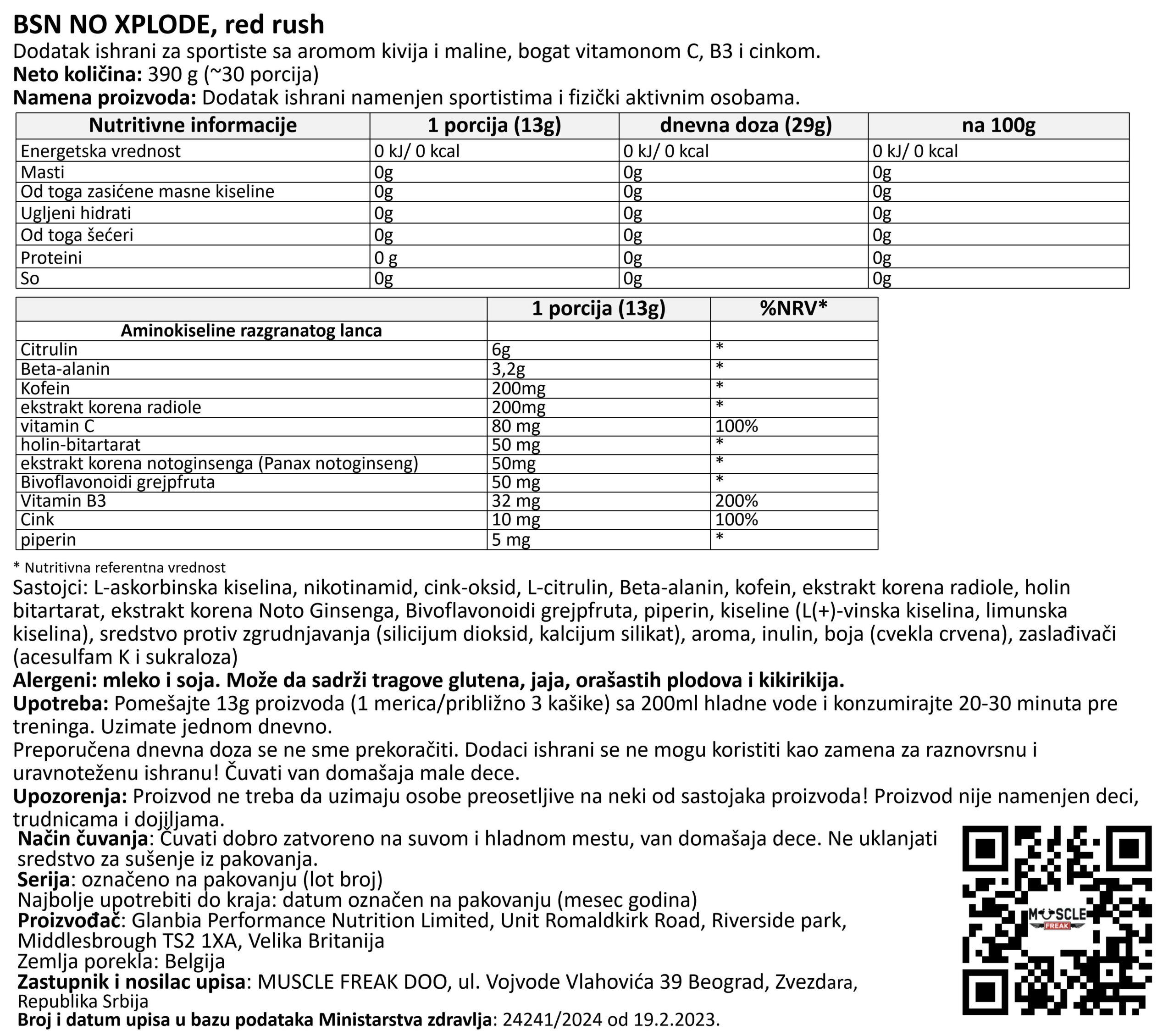 Vrsta proizvoda: Prašak za pripremu napitka sa aminokiselinama i vitaminima, sa zaslađivačima.