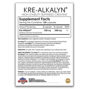 KRE-ALKALYN® je višestruko patentirani, puferovani kreatin monohidrat sa stabilnim pH opsegom od 12–14, dizajniran da pruži maksimalnu snagu, izdržljivost i mišićni rast – bez neželjenih efekata koje često izaziva standardni kreatin.