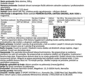 Beta Alanin iz IronMaxxa jedan je od retkih dodataka koji dokazano smanjuje mišićni zamor. Povećana količina beta alanina u telu povećaće nivoe karnozina u mišićima. Karnozin efikasno deluje protiv acidoze; glavnog uzroka zamora. Iz tog razloga je Beta Alanin iz IronMaxxa visoko efikasan proizvod za poboljšanje kapaciteta i počinje delovati već nakon prve doze. Možete ga upotrebiti tada kada je ispred vas dug i težak trening.