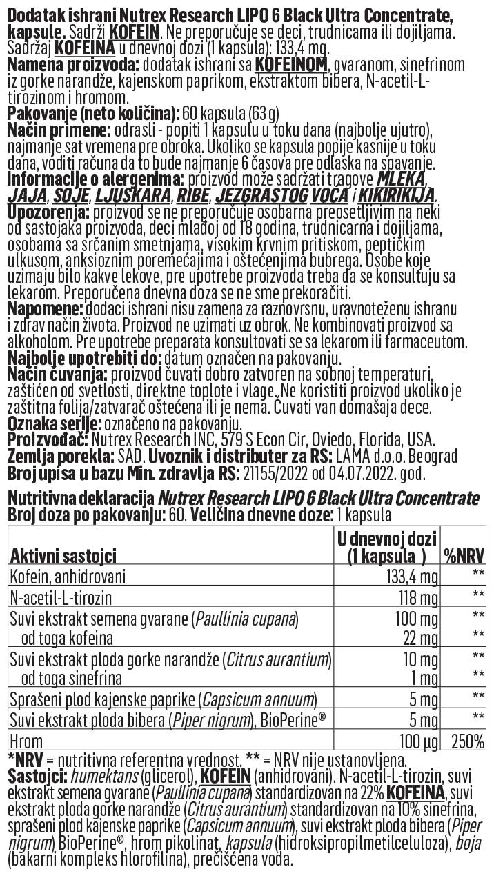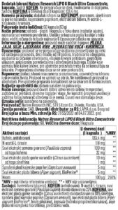 Nutritivna vrednost za LIPO 6 BLACK