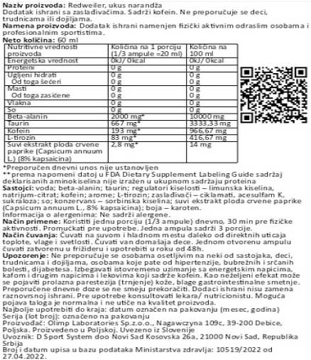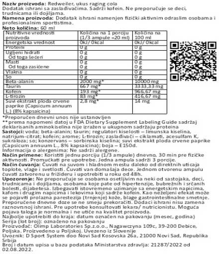 Nutritivna vrednost za OLIMP REDWEILER SHOT, 60ml