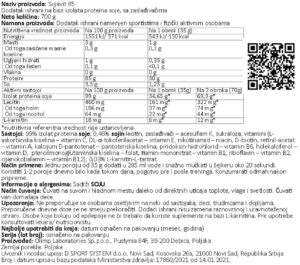 Najkvalitetniji čisti izolat sojinih proteina, dopunjen metaboličkim aktivatorjima (holin, inozitol in L-karnitin), vitaminima i mineralima, koji osigurava normalan tok metaboličkih procesa tokom fizičke aktivnosti i posle uzimanja proteina. Za izolate sojinih proteina karakteristični su visoka hranljiva vrednost i aktivnost, koja stimuliše zdravlje. Zbog ovih karakteristika smatraju se za izvanredno učinkovite izvore prehrambenih vitamina za aktivne osobe i vegetarijance. Proizvod je oblikovan za osobe s povećanim potrebama za proteinima, osobito za vegetarijance i osobe, koje ne podnose životinske proteine, a žive aktivno,kao i sportiste.