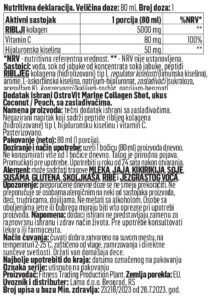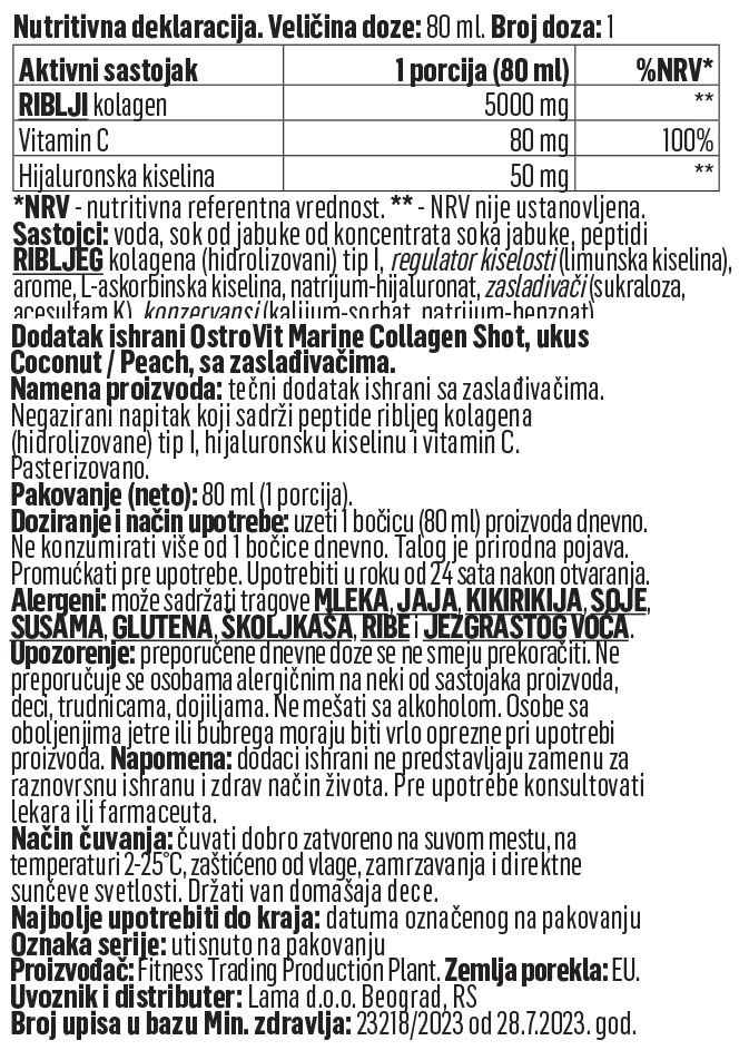 Nutritivna vrednost za Ostrovit Collagen Marine SHOT, 80ml, Coconut-Peach
