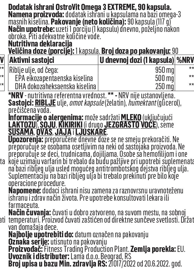 OSTROVIT Omega 3 Extreme, 90 kapsula