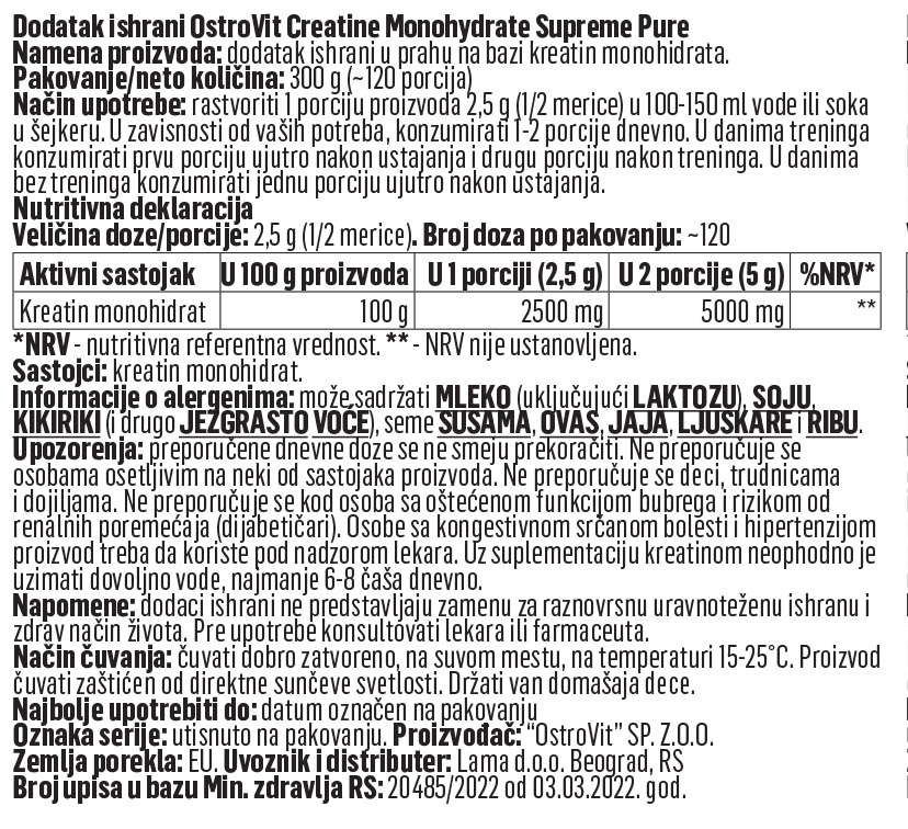 je visokokvalitetni dodatak ishrani sa čistim kreatin monohidratom, namenjen poboljšanju fizičkih performansi, podršci rastu mišića i povećanju izdržljivosti.