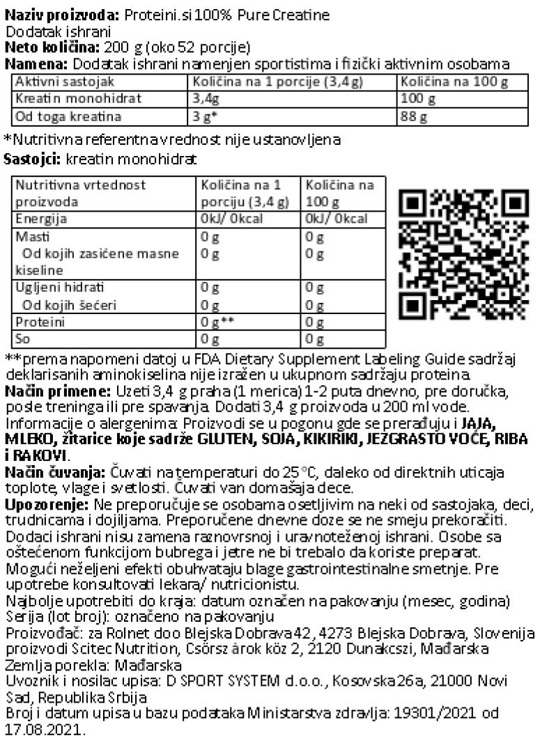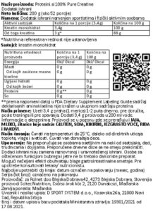 Nutritivna vrednost za PROTEINI.SI 100% PURE CREATINE, 200g