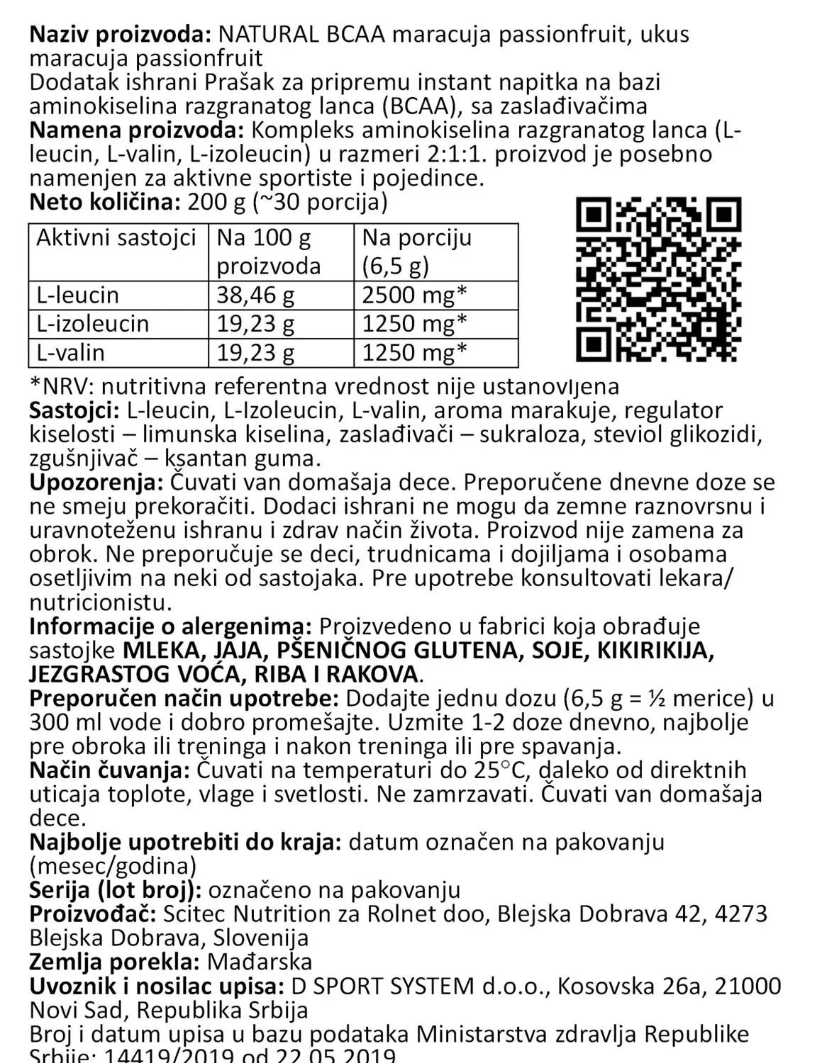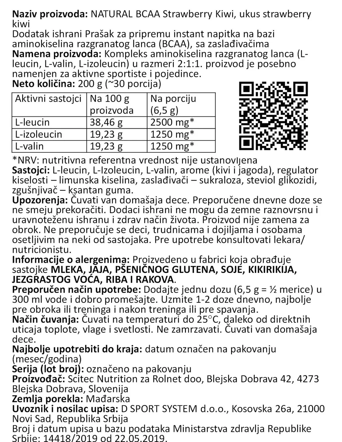 Nutritivna vrednost za PROTEINI.SI NATURAL BCAA, 200g