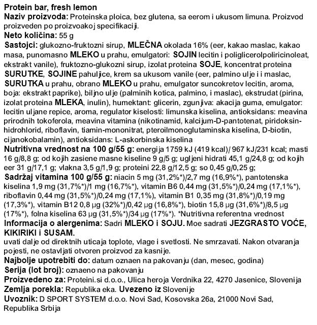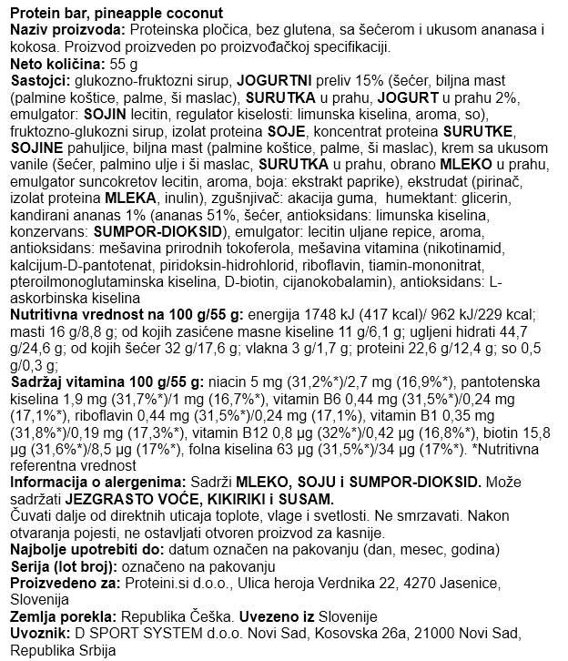 Nutritivna vrednost za PROTEINI.SI PROTEIN BAR, 55g, (Summer Edition)
