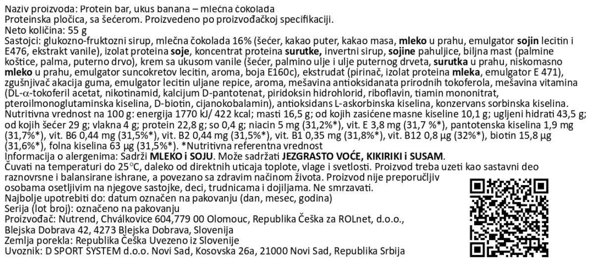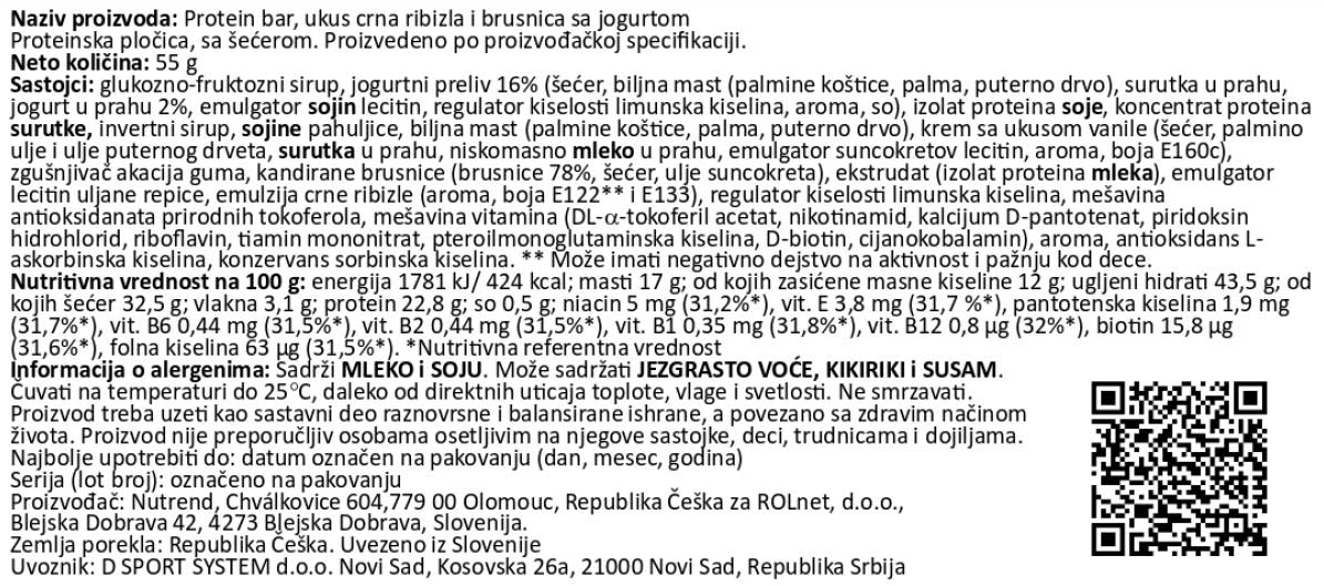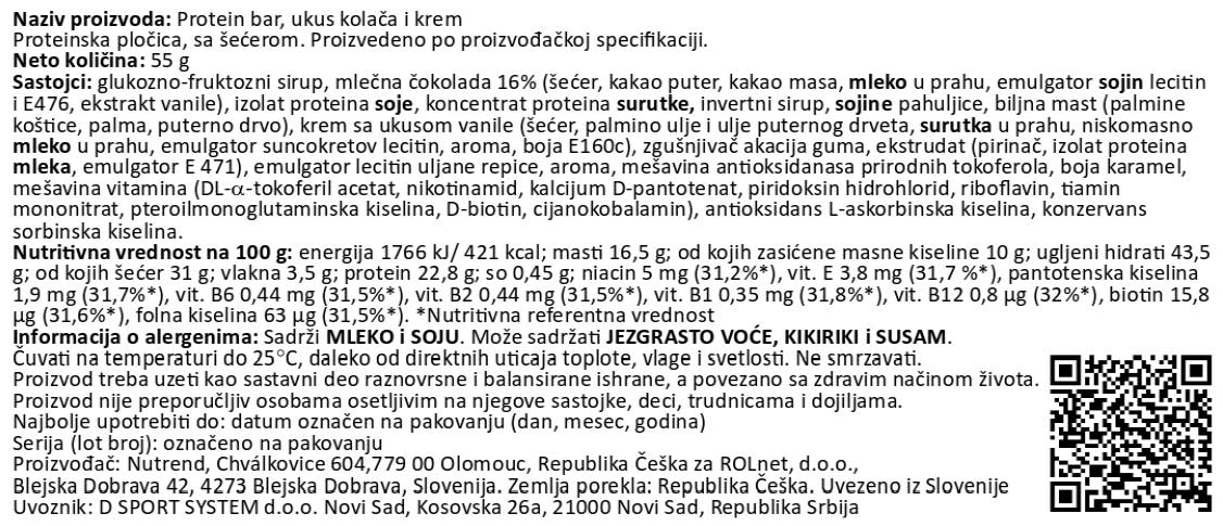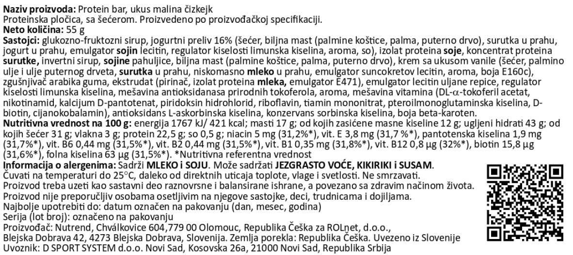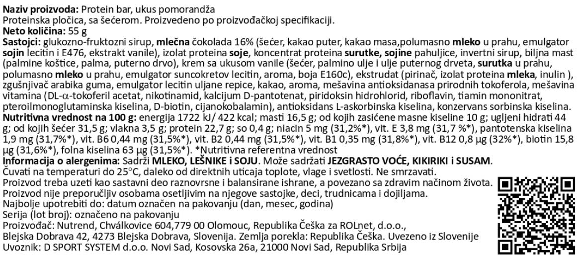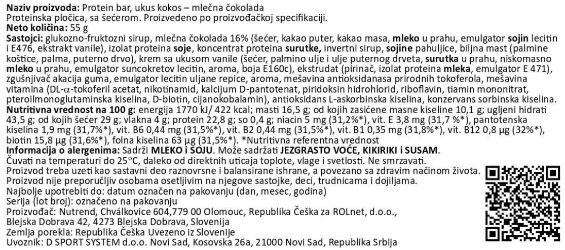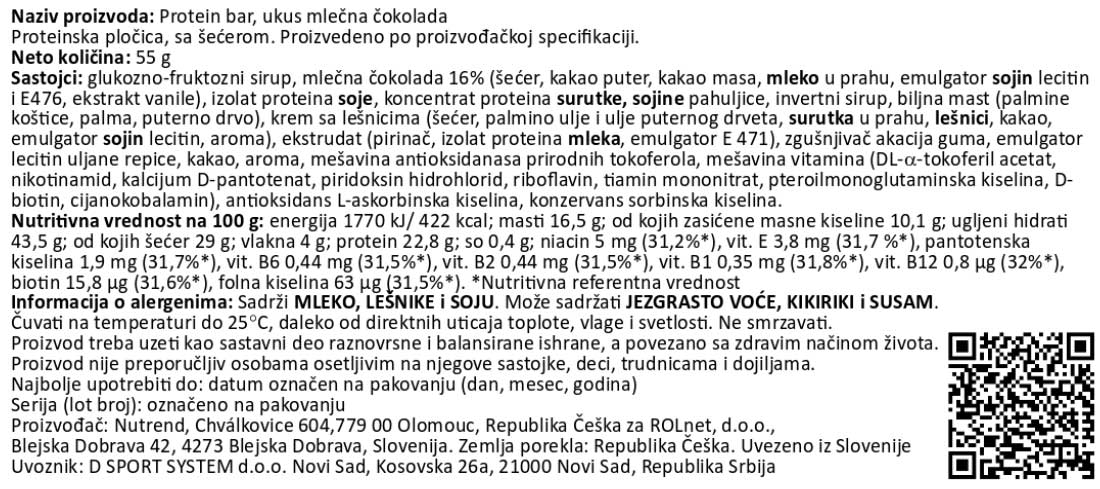 Nutritivna vrednost za PROTEINI.SI PROTEIN BAR, 55g