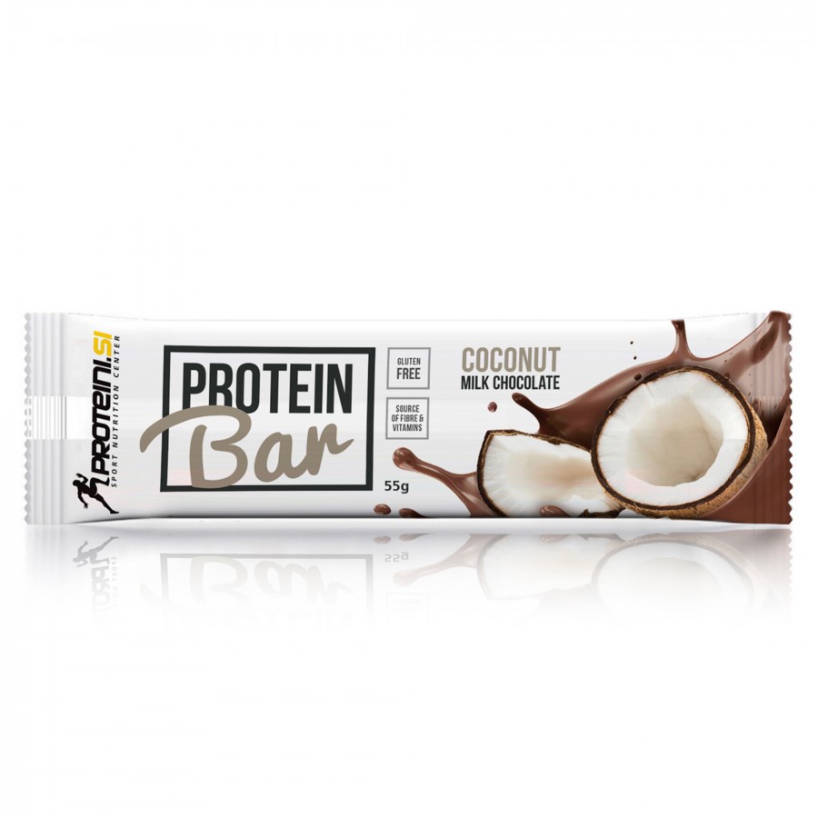 Proteini.si Protein Bar je, zahvaljujući modernoj tehnologiji, izuzetno mekana i ukusna i ujedno i efikasna i potpuno uravnotežena proteinska čokoladica. Sadrži idealan odnos proteina i ugljenih hidrata (1:2) i zato predstavlja idealnu zamenu obroka. S 23% proteina i 10 vitamina ne samo da će vam čokoladica pomoći da smanjite glad i da obuzdate vašu želju za hranom, nego će vam i osigurati potrebnu količinu energije i hranjivih materija.