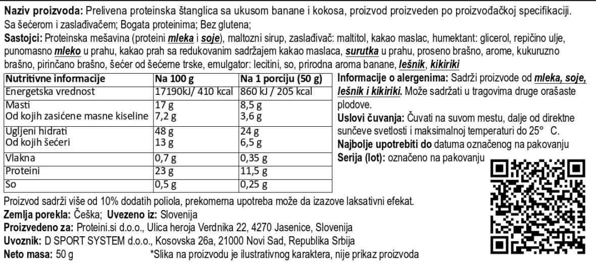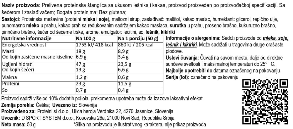 Nutritivna vrednost za PROTEINI.SI PROTEIN BAR SPECIAL EDITION, 50g