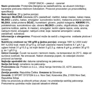 Nutritivna vrednost za PROTEINI.SI SNICKS, 50g, Peanut Butter & Caramel