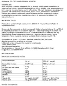Nutritivna vrednost za Reload Long 330ml, Limun