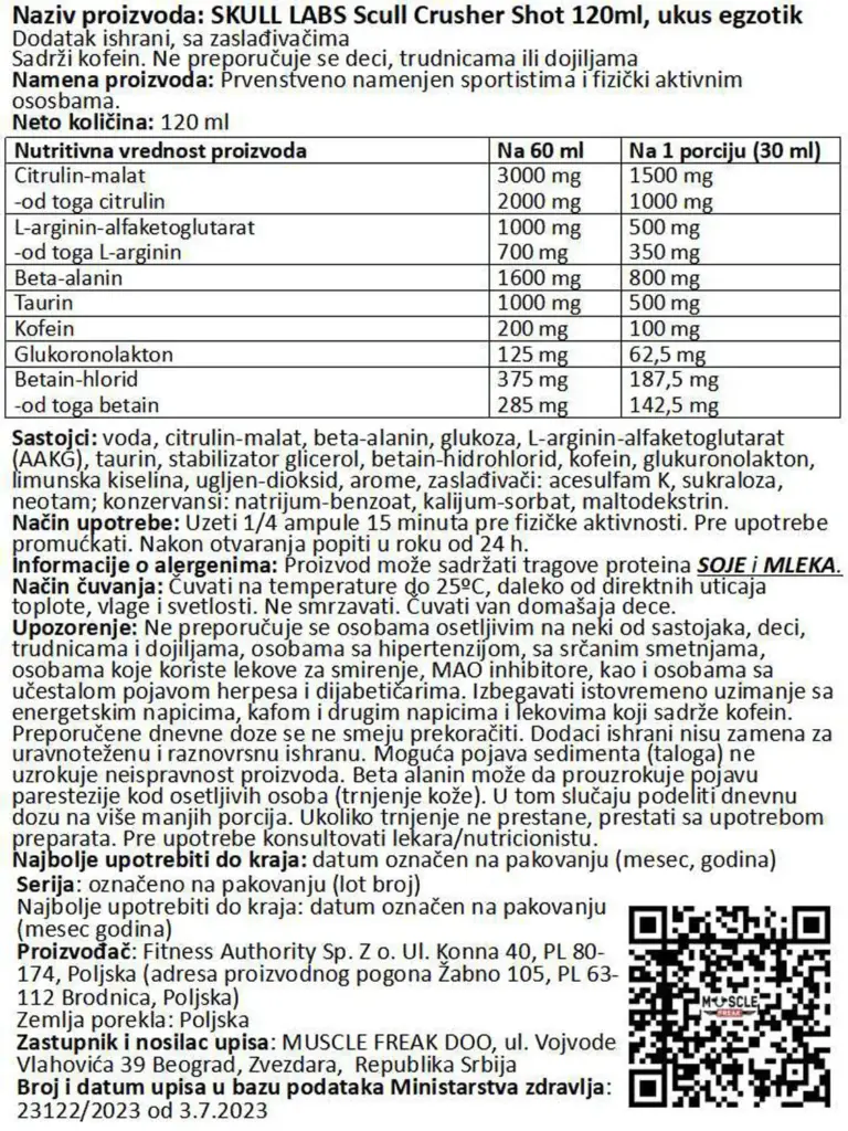 SKULL LABS® SKULL CRUSHER SHOT je zamišljen kao vrhunski napitak za pre