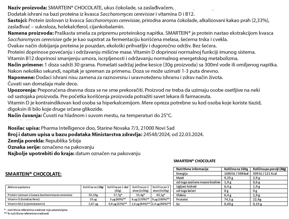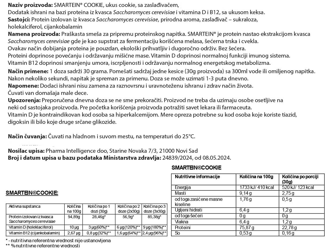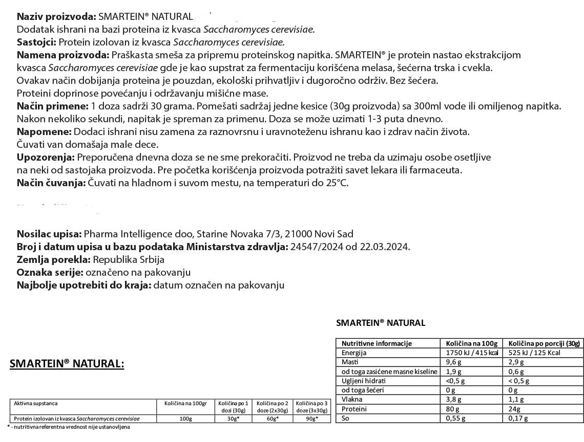 Nutritivna vrednost za SMARTEIN VEGAN PROTEIN, 500g