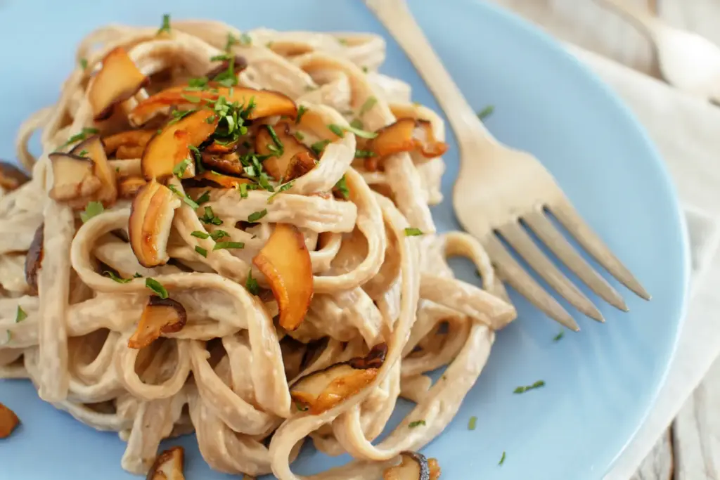 Skuvaj integralnu testeninu, a na tiganju prodinstaj pečurke i luk uz minimalno ulja. Kada skloniš sa vatre, umešaj posni sir i začine (biber, peršun, beli luk). Dobijaš kremast sos bez pavlake.